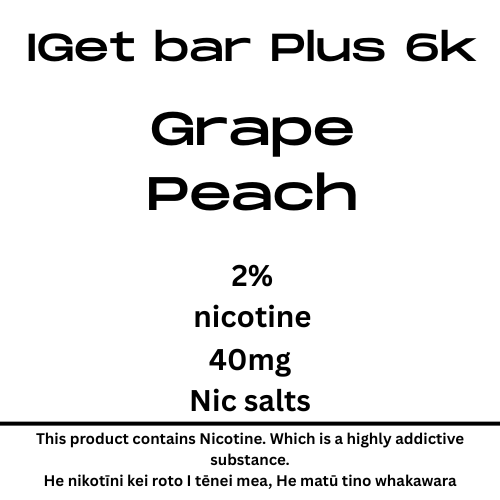- Iget Bar Plus Pod Grape Peach 20mg Nicotine $16.90 NZD /