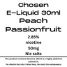Ko Chosen he tohu kiwi i hangaia i roto i tetahi o nga taiwhanga hanga wairewa ISO5 tino rongonui o Aotearoa. E waatea ana nga eLiquid kua whiriwhiria i roto i te 9 reka hua me te 3 kaha nicotine. He wai vape karaehe o te ao e tika ana mo te mahi mo te ra katoa.