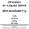 Ko Chosen he tohu kiwi i hangaia i roto i tetahi o nga taiwhanga hanga wairewa ISO5 tino rongonui o Aotearoa. E waatea ana nga eLiquid kua whiriwhiria i roto i te 9 reka hua me te 3 kaha nicotine. He wai vape karaehe o te ao e tika ana mo te mahi mo te ra katoa.